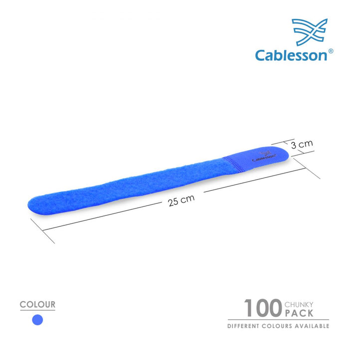 Cablesson Hook and Loop Nylon Velcro Cable Ties Chunky Pack of 100 - Blue