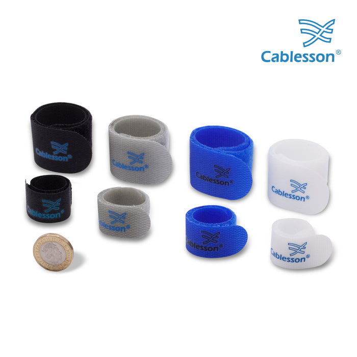 Put an end to the cable mess! The Cablesson Cable Ties come in a pack of 10 20 30 50 and 100 in Black Blue Grey and White colors to let you tie up all sorts of cables and keep them organized. The simple one-piece design wraps onto itself for a secure hold which single-handedly prevents having untidy cable runs.