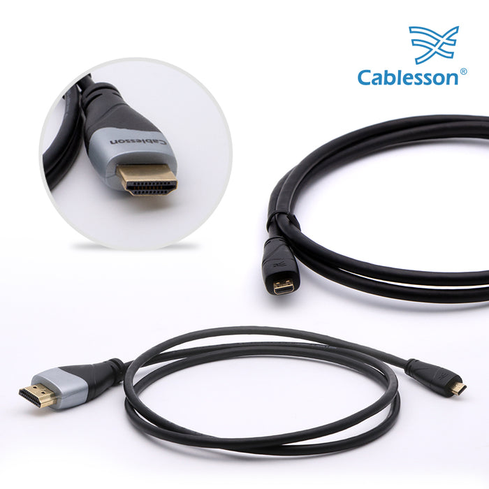 The Cablesson Ivuna Advanced High Speed Micro HDMI Cable is a HDMI Type A to HDMI Type D Cable. HDMI Type D has a Micro HDMI connector and incorporates the latest HDMI versions 1.4, 2.0 (2.0a & 2.0b) and 2.1. With 24k Gold-Platted connectors for on optimized signal transmission, this cable is suitable for Kindle Fire HD (2012), Asus - Transformer Prime, Toshiba - Thrive / Excite 10LE, Acer - Iconia Tab A100 and Motorola Droid Xyboard 8.2 tablets, Samsung, Pentax, Olympus and Fuji Cameras, Mobile Phones, Digital Camera & Camcorders, GoPro and Tablets that use the Micro D HDMI connection.