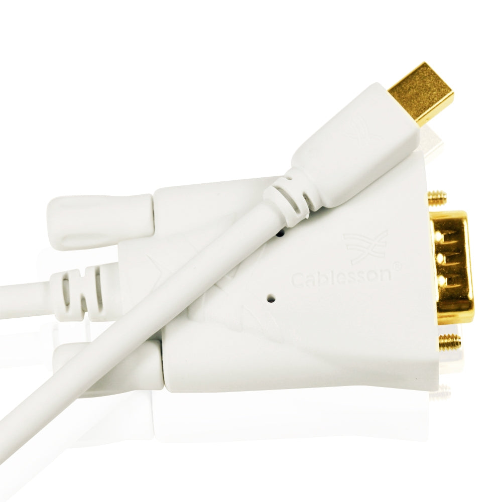This Cablesson Mini DisplayPort Cable converts the video output to VGA for use with a VGA monitor or display.