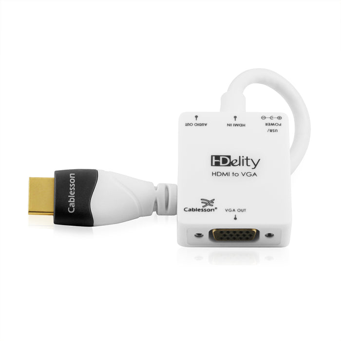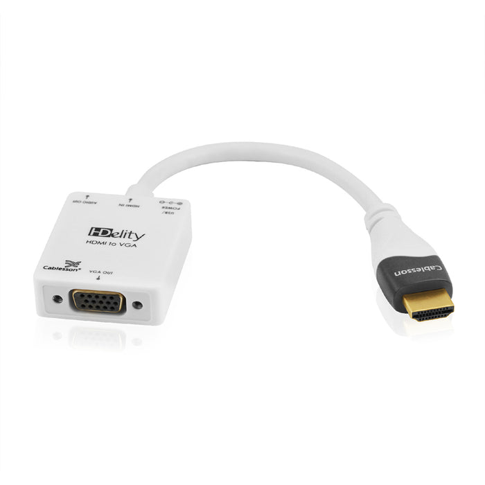 This Cablesson Active HDMI to VGA Male to Female Adapter with Micro USB Power is a high-quality HDMI to VGA Converter Cable from Cablesson making it possible to convert the digital output signal of an HDMI connection into an analog signal for a VGA monitor input. The Active HDMI to VGA Adapter has a Built-in Active IC chip converts digital HDMI signal into analog VGA video (PC HDMI Adapter).