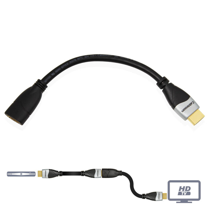 The Cablesson Ivuna Advanced High-Speed range of HDMI Extension cables have been designed to meet the high bandwidth performance standards set by HDMI Version 1.4 2.0 (2.0a & 2.0b) and 2.1. The highly advanced design of this cable incorporates a special stress relief mechanism that permits the cable to bend with minimum stress on the HDMI port when connected horizontally or vertically. Backward compatible and delivers Up to 4k Digital Ultra HD Signal. ARC cable and 3D Compatible.
