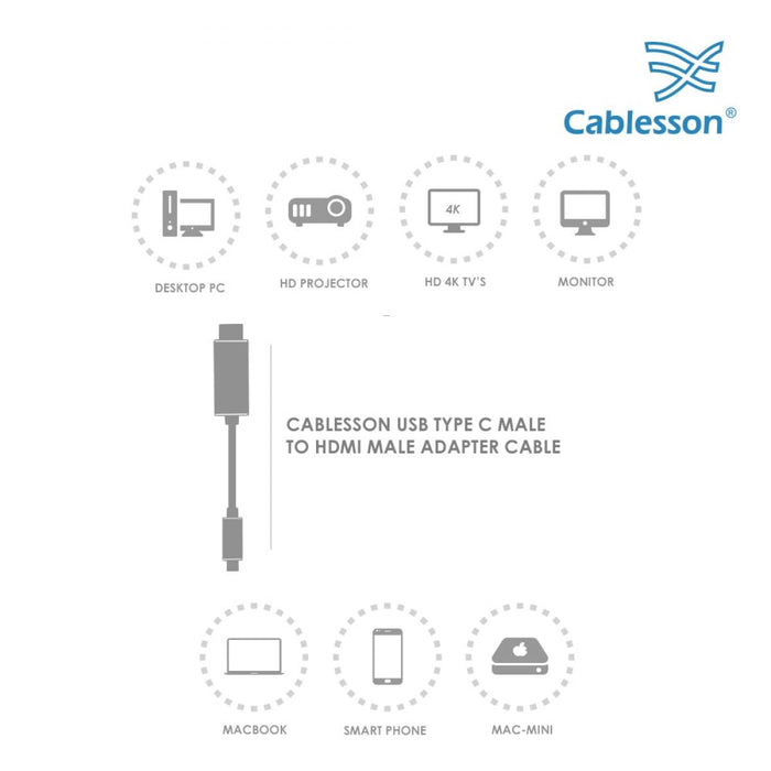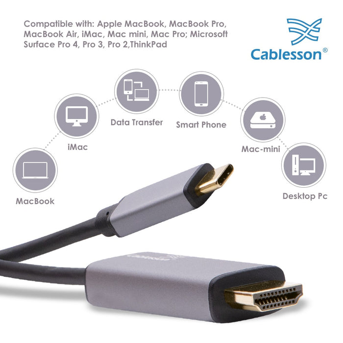 This USB Type C Male to HDMI Male cable can be directly connected to device with HDMI female interface, no dongles, no adapter, and no need of any other HDMI cable. Plug & play with no driver installation, easy to use.