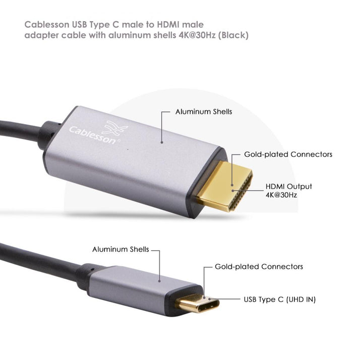 Cablesson USB Type C male to HDMI male adapter cable with aluminum shells 4K at 30Hz (UHD 4Kx2K) Adapter Converter for iMac 2017,Macbook Pro 2017 2016,Samsung Galaxy S9 S8-Black
