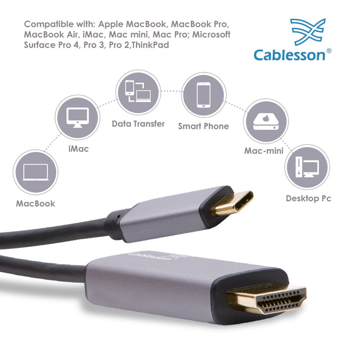 This USB Type C (Thunderbolt 3) to HDMI Cable can easily connect a USB-C enabled computer/ Laptop to an HDTV monitor or projector with HDMI input; It is an ideal solution for conference presentation gaming or expanding workspace by connecting your Type C devices to a large screen.