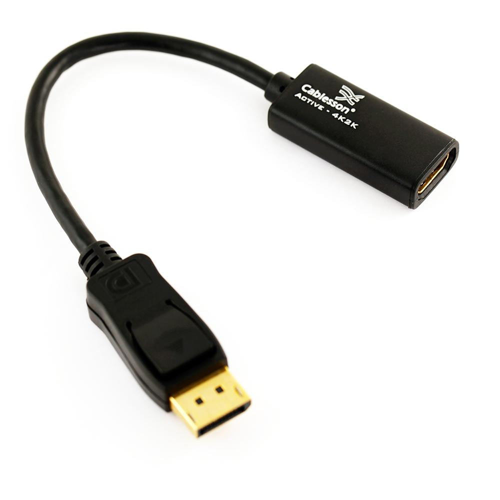 With this Cablesson DisplayPort to HDMI - Adapter (Active) cable, it is easy to connect your devices that have HDMI-connections such as televisions external monitors or projectors to a device with a DisplayPort-connection e.g. PC (graphics cards) notebooks and Displays with a maximum resolution of 4k.