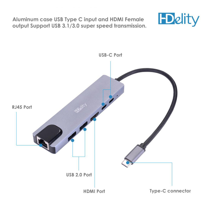 The latest HDelity adapter features 2 USB 3.0 ports, 2 USB-C PD port, a fully compliant 4K-8K HDMI 3.1 port and an Ethernet one, so you can transfer data and get a better Ethernet connection in one go.
