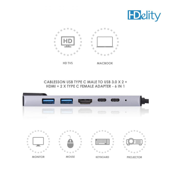 ["6 in 1 3.0","Adapter","HDelity","HDelity USB Type C Male to USB 3.0 * 2 + HDMI +Type C Female * 2 Adapter 6 in 1","New","sale_sale","USB","USB hub","usb-adapter","USB-C"]
