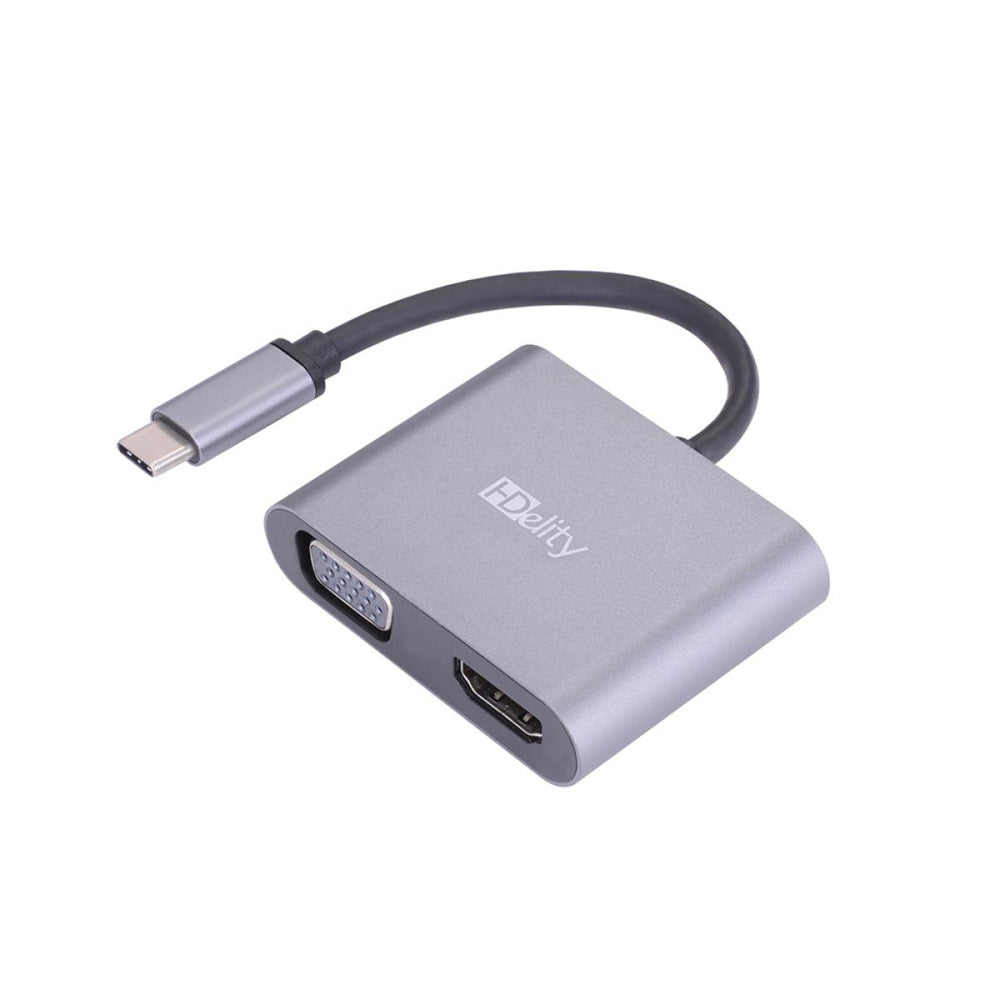 HDelity presents the 2 in 1 USB Type C to HDMI 2.1 + VGA Adapter in Aluminium casing.