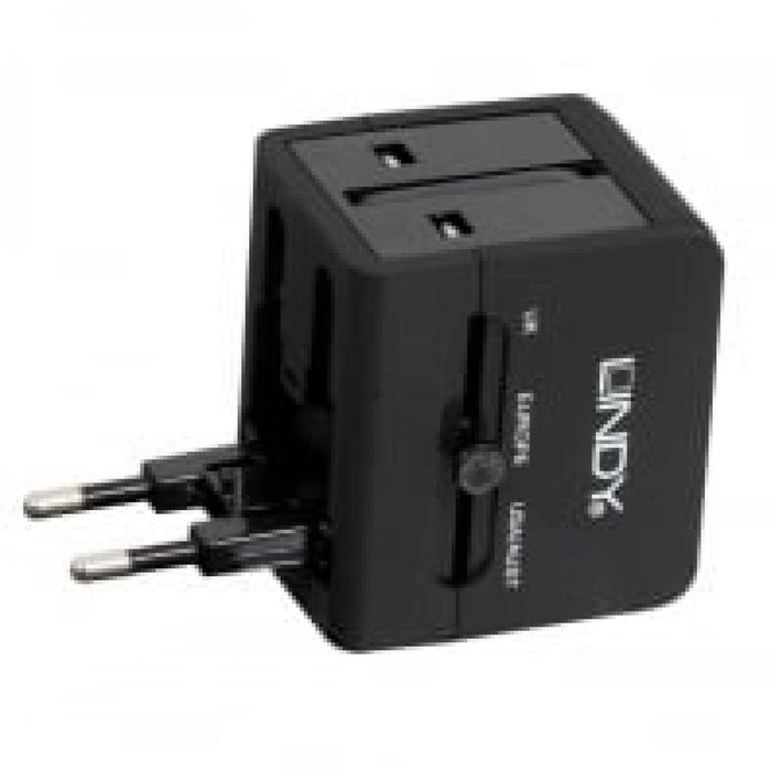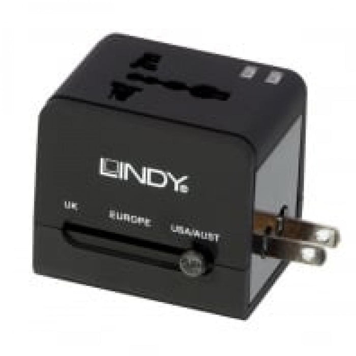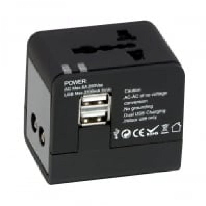 Versatile. multi country USB travel adapter. All-in-one design features UK. Euro and USA/Australia plug types. Replace multiple travel adapters with one compact unit. Each different plug type slides out of the unit and lock into place. Simply slide the plug back into the unit when its not in use??. Two USB ports for powering smartphones and other USB devices. 2 year warranty. This USB Mains Plug Travel Adapter is the ideal travel companion. It allows you to easily charge your USB devices throughout the world. Suitable for use with most USB powered devices including MP3 players. mobile phones etc this versatile device means you can replace your collection of travel adapters with one handy unit.?? ?? Please note: Some intelligent USB devices may not permit charging from an external power supply. In some circumstances they will only function correctly with the manufacturers original charger. Please check your user manual for further information regarding charging. This product has no grounding and is for unearthed or double insulated devices only.