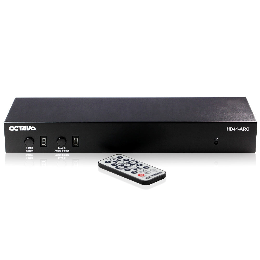 The Octava 4x1 HDMI switch +ARC includes: 4 HDMI inputs 4 Optical Audio inputs 1 Optical Audio output 1 HDMI output with ARC support.