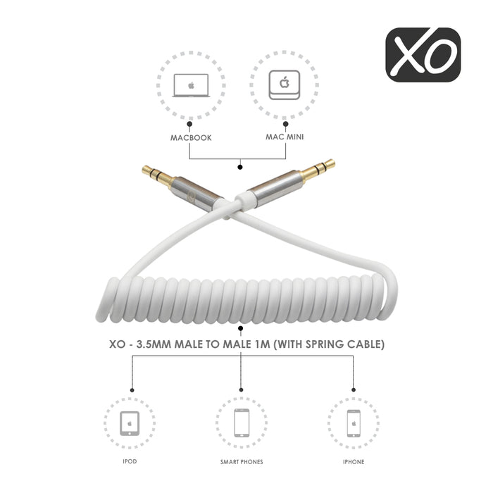 The XO 3.5mm aux cable is precisely designed that it won't get loose or pop out of your devices. With its soft and flexible PVC outer coating, this Jack cable is more flexible and durable. Plus, its spring wire design is 100% tangle-free. 24K gold-plated connectors are of excellent conductivity and low resistance to ensure a lossless transmission of home/car stereo audio.