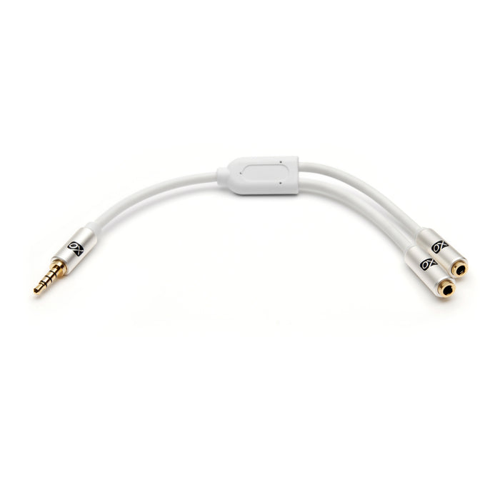 XO - 3.5mm to 2 x 3.5mm Y White Cable - Headphone Mic Audio Y splitter for headsets with separate headphone / microphone plugs - Stereo 3.5mm male to twin 3.5mm female mono adapter to share music