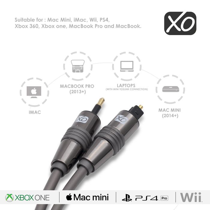 - The XO digital audio cable connects from Blu-Ray DVD or CD player and other devices with mini-Toslink port to your AC receiver preamplifier audio system home theater system soundbar surround sound D/A Converters Dolby Digital DTS surround sound receivers MiniDisk players and recorders Pro Audio cards and many more.