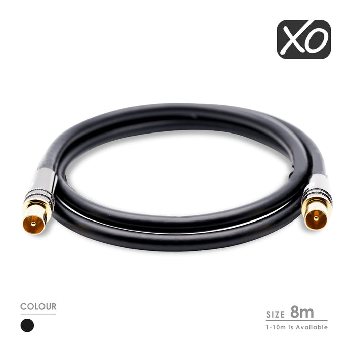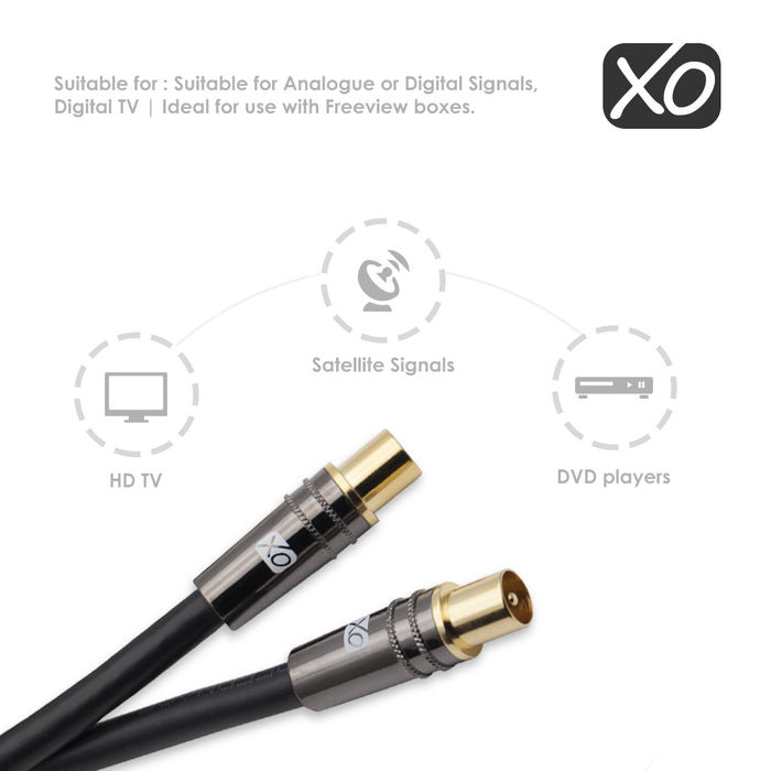 XO Coax (Antenna) products are made exclusively for XO Platinum Brand and are not available from other vendors. Our products are manufactured to the highest standards in order to fulfill the high requirements of today's home cinema world. Optimal signal transfer is the basis for brilliant HD picture quality - this high-end cable is a guarantee for it. Selling direct means not only can we offer unbeatable value for money but we also reduce the environmental impact of our product by eliminating wasteful retail packaging and massively reducing the transport volume and chain. The XO Coax (Antenna) 1 x Male to 1 x Male Cables are for televisions DVB-Ts or DVB-C receivers. This shielded cable is better protected against electromagnetic disturbances than standard cables. The extra sheath current on the cables passed between the television and receiver/antenna socket is minimised by the protection and shielding of the cable. This significantly reduces image distortions such as coloured horizontal stripes. The tv antenna cables can also be used as a high quality extension.
