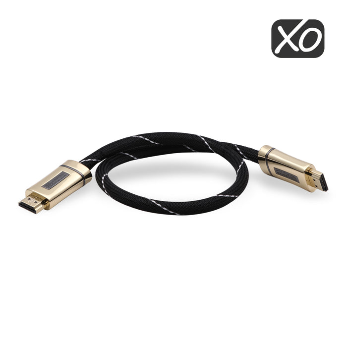 The XO Platinum High Speed HDMI range of HDMI cables have been designed to meet the high bandwidth performance standards set by HDMI Version 1.4 2.0 (2.0a & 2.0b) and 2.1. The nylon braiding gives it a snakeskin-like look adding to the aesthetic appeal of our product and more importantly acts protective. The highly advanced design of this cable incorporates a special stress relief mechanism that permits the cable to bend with minimum stress on the HDMI port when connected horizontally or vertically. Backward compatible and delivers Up to 4k Digital Ultra HD Signal. ARC cable and 3D Compatible.