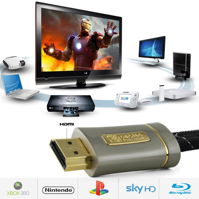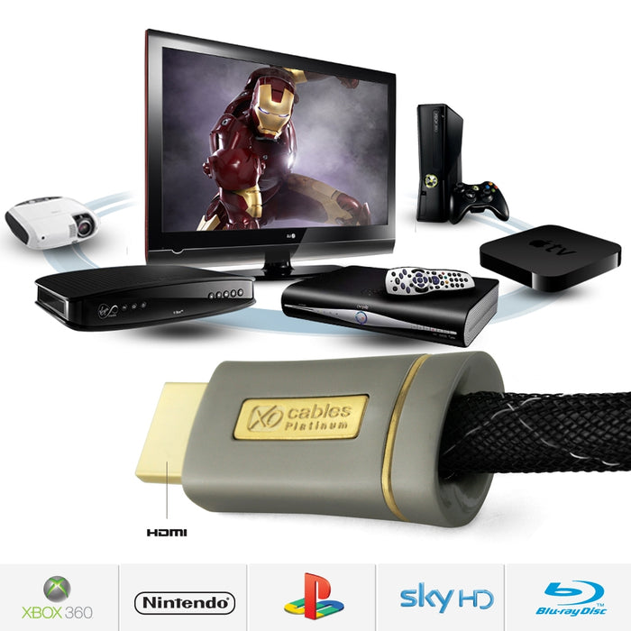 The XO Platinum HDMI High Speed cable supports all the latest versions of HDMI (2.1/2.0b/2.0a/2.0/1.4) and specifications including 4k HDMI support ARC and 3D function and Ethernet. This fast hdmi to hdmi cable will ensure 4k resolution and 4k video (Full HD 2160p 18gbps) on Ultra HD TVs.This HDMI wire supports most HD video and standard HDMI video and audio format such as xv Color and Deep Color | Transfers all digital audio formats such as 2.0 (stereo / mono) 2.1 5.1 7.1 DTS HD Master Audio Dolby TrueHD Dolby Digital DTS.