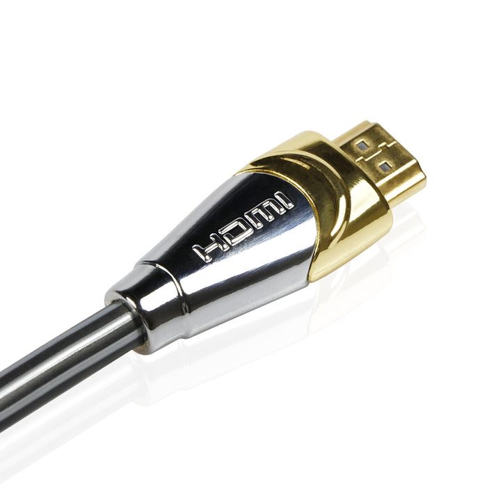 The XO Platinum Pro Gold High Speed HDMI range of HDMI cables have been designed to meet the high bandwidth performance standards set by HDMI Version 1.4 2.0 (2.0a & 2.0b) and 2.1. The highly advanced design of this cable incorporates a special stress relief mechanism that permits the cable to bend with minimum stress on the HDMI port when connected horizontally or vertically. Metallic Die-Cast HDMI Jacket Connectors provide the pinnacle of protection from physical strain and electronic interference. Backward compatible and delivers Up to 4k Digital Ultra HD Signal. ARC cable and 3D Compatible.